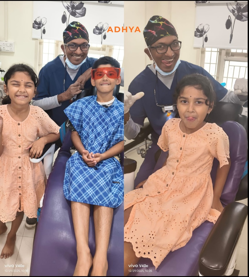 9yr old Harsha is from Chennai. His parents and grandparents are old patients . When he visited to Coimbatore during holidays he fell down and broke his Upper Central Incisor Tooth๐Ÿ˜ฌ. All of them family came as an emergency to attend the tooth . A tooth colored bonded Restoation was done and instructions given .The precious smile ๐Ÿ˜Š of this little one๐Ÿ’› brought back immediately Another boy same type of Tooth fracture attended immediately on a Sunday morning 11 am to bring the Smile back โ˜บ๏ธ immediately.